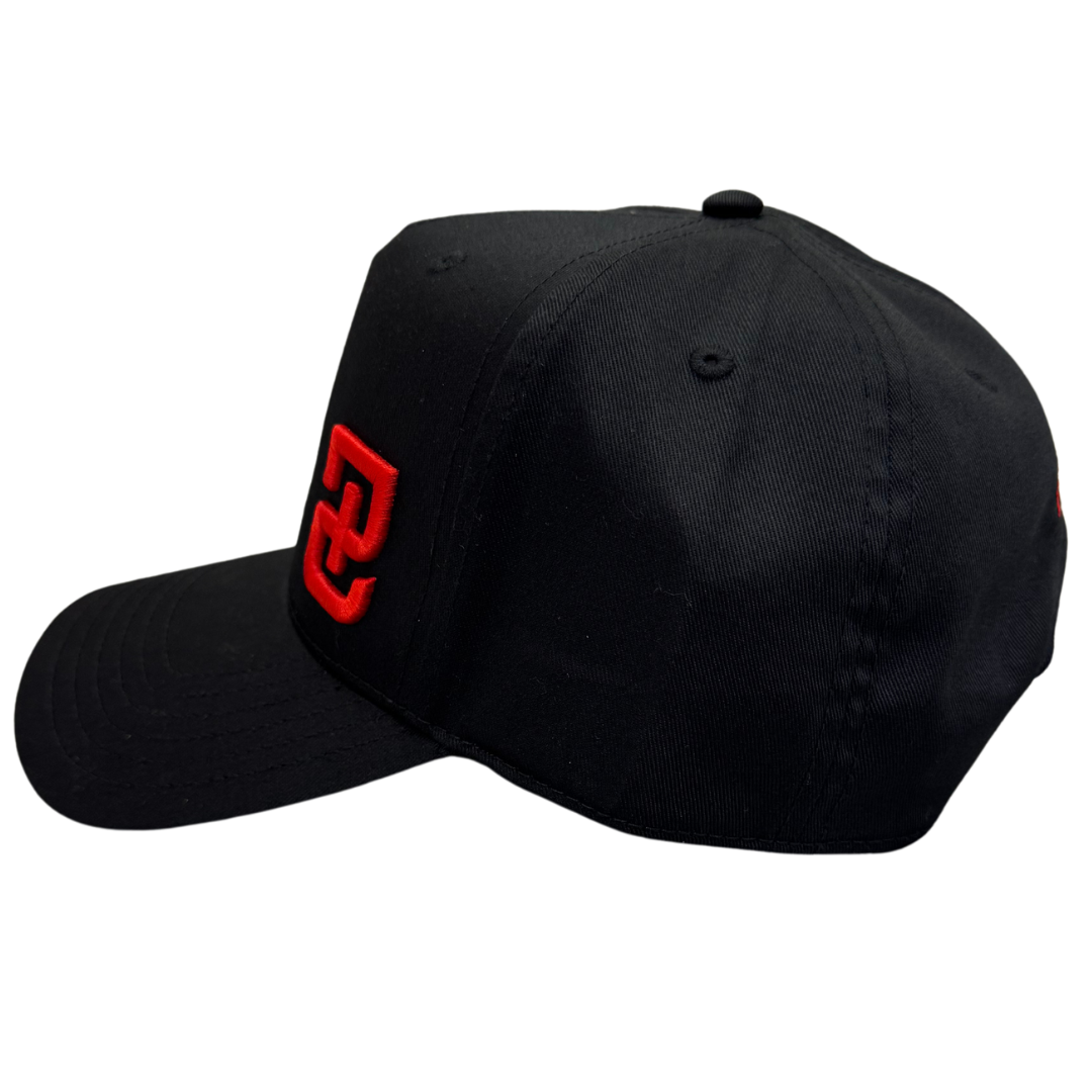 • Black with red puff embroidery